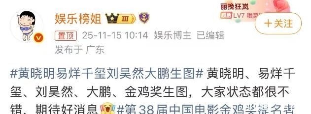 5. 在奖项揭晓前,一组未经修饰的现场生图率先引爆网络,“黄晓明易烊千玺刘昊然大鹏生图”迅速登上热搜榜单前列,引发广泛讨论。